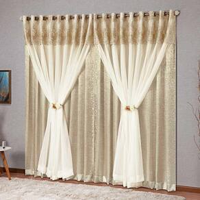 Transforme o seu espaço com a Cortina Nobreza, que combina tecido de cetim amassado com voil e um bandô bordado floral. Adicione um toque de classe ao seu ambiente e desfrute de uma decoração encantadora e refinada.