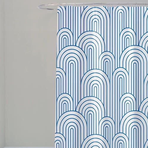Cortina Para Box Banheiro Antimofo Poliéster 198x180cm Ondas Azuis -