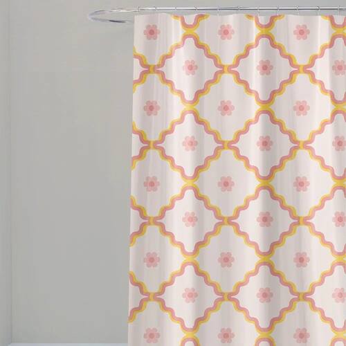 Cortina Para Box Banheiro Antimofo Poliéster 198x180cm Retrô Amarela -