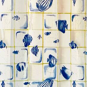Cortina Para Box Banheiro Peva Antimofo 180x160cm Peixes Azuis -