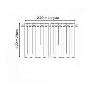 Consumo de tecido 3 metros de largura dividido em 2 peças de 1,5 m x 1,2 m de altura; Com 16 ilhós. sendo 8 de cada lado Indicada para varão 1,5 m a 2m de 19mm varão não incluso .
