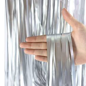 Conteúdo da embalagem: 3 cortinas metalizadas prateadas em fitas