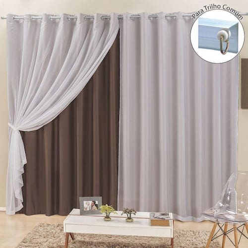 Já a parte frontal em voil adiciona um toque de leveza e elegância à cortina. O voil é um tecido translúcido que permite a passagem suave da luz, criando um efeito suave e delicado no ambiente. Ele também traz um aspecto visualmente agradável, tornando a cortina um elemento decorativo charmoso e versátil.