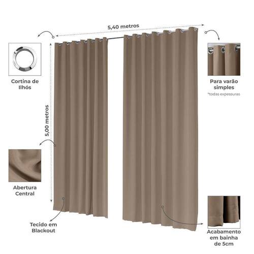 Características: cortina longa para pé direito duplo ideal para varão simples de 4m Tecido blackout avesso todo preto Não acompanha varão Detalhe de acabamento em ilhós Medida total de 5,40m de largura esticada cortina dividida 2 partes, ou seja, pode ser aberta ao meio Produto não é plástico pvc , é tecido Cortina não é 100% blackout, veda aproximadamente 70% Cada parte da cortina possui 2,70m esticada Tecido blackout Composição 100% poliéster Obs: por conta de acabamento, poderá haver variação de 2 a 3 centímetros na altura da cortina, dependendo do lote de tecido Marca: Sofisticada Moda Casa Ean: 7908128635346