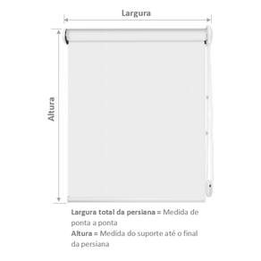 Central de Persianas   Compre direto de nossa fábrica - Persiana Rolô Blackout - Toda montada e pronta para ser instalada   Tamanho conforme anúncio OBS: Sempre a primeira medida, referente a largura. O segundo, refere-se a altura. (Larg x Alt)     1 - DESCRIÇÃO DO PRODUTO 2 - FICHA TÉCNICA 3 - BENEFÍCIOS DO PRODUTO 4 - COMO MEDIR? 5 - FORMA DE ENVIO 6 - PRAZO DE FABRICAÇÃO 7 - DIFERENCIAIS 8 - OBSERVAÇÕES IMPORTANTES     1 - DESCRIÇÃO DO PRODUTO   Persiana Rolô Tela Blackout - escolha ideal para o ambiente que requer charme e elegância. Com a Central de Persianas, você terá o melhor e mais moderno produto para a decoração de seu ambiente.   Protegendo os seus móveis do sol, decorando o espaço que você desejar e trazendo suavidade e luxo para o seu ambiente. O material de alta qualidade e com um valor super acessível ao seu bolso.   2 - FICHA TÉCNICA   - Tecido: Blackout importado. - Indicada para: Varandas, salas, escritórios, quartos, comércios, locais que não requerem a entrada de luz solar. - Tamanho: Conforme anúncio. - Marca: Central de Persianas. - Acionamento: Manual com Corrente Bola 10. - Lado do comando: Direito ou esquerdo. - Pintura / Revestimento: Base de alumínio branco em pintura eletrostática. - Material: PVC e Poliéster. - Largura do Tecido: A Largura da Persiana informada, de toda a estrutura, o tecido fica aproximadamente 3,0cm menor na parte inferior, devido ao comando e aos suportes. - Cor: Conforme anuncio. Temos disponíveis: Branco, Cinza claro e Bege escuro     3 - BENEFÍCIOS DO PRODUTO    Proteja o seu ambiente e os objetos contra os raios solares. - Fácil de limpar, não acumula poeira. - Produzida com materiais de alta qualidade, resistência e durabilidade garantida. - Enviamos o seu produto pronto para instalação. - Produto fácil de instalar   4 - COMO MEDIR?   Persiana instalada fora do vão: - Adicione 10cm de cada lado (se possível) e 10cm para parte superior e 10cm para parte inferior. Exemplo: Largura 1,10m x 1,20m Altura. Neste caso, as medidas ficariam: Largura 1,30m x 1,40 Altura. - Recomenda-se a sobra para que a peça fique encaixada melhor nas medidas, evitando que a persiana fique muito "justa".   Persiana instalada no vão: Meça a medida exata de dentro do vão.   5 - FORMA DE ENVIO   Enviamos através de transportadoras credenciadas.   6 - PRAZO DE FABRICAÇÃO   Nosso produto é personalizado, todos os pedidos são feitos na hora que o cliente realiza a compra e o seu pagamento é confirmado. Damos um prazo de até 2 dias úteis para a fabricação + tempo de transporte (variando de região para região).   7 - DIFERENCIAIS   Temos como objetivo oferecer produtos de qualidade e economia com excelente atendimento para os nossos clientes. Além de produtos de alta qualidade, somos destaques no segmento, já que possuímos fábrica própria e atendemos diretamente nosso consumidor final.   8 - OBSERVAÇÕES IMPORTANTES   - Acompanha kit Completo: Persiana, Comando, Cordinha, Pendulo, Corrente, Suporte e Manual de Instalação   - Não enviamos Buchas e Parafusos, pois cada local de instalação requer um tipo de parafuso, como por exemplo: madeira, concreto, parede, gesso.   GARANTIA DE 90 DIAS CONTRA DEFEITOS DE FABRICACAO CONFORME CODIGO DE DEFESA DO CONSUMIDOR (CDC)