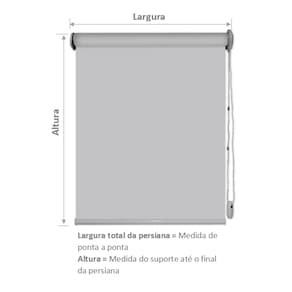 Central de Persianas   Compre direto de nossa fábrica - Persiana Rolô Blackout - Toda montada e pronta para ser instalada   Tamanho conforme anúncio OBS: Sempre a primeira medida, referente a largura. O segundo, refere-se a altura. (Larg x Alt)     1 - DESCRIÇÃO DO PRODUTO 2 - FICHA TÉCNICA 3 - BENEFÍCIOS DO PRODUTO 4 - COMO MEDIR? 5 - FORMA DE ENVIO 6 - PRAZO DE FABRICAÇÃO 7 - DIFERENCIAIS 8 - OBSERVAÇÕES IMPORTANTES     1 - DESCRIÇÃO DO PRODUTO   Persiana Rolô Tela Blackout - escolha ideal para o ambiente que requer charme e elegância. Com a Central de Persianas, você terá o melhor e mais moderno produto para a decoração de seu ambiente.   Protegendo os seus móveis do sol, decorando o espaço que você desejar e trazendo suavidade e luxo para o seu ambiente. O material de alta qualidade e com um valor super acessível ao seu bolso.   2 - FICHA TÉCNICA   - Tecido: Blackout importado. - Indicada para: Varandas, salas, escritórios, quartos, comércios, locais que não requerem a entrada de luz solar. - Tamanho: Conforme anúncio. - Marca: Central de Persianas. - Acionamento: Manual com Corrente Bola 10. - Lado do comando: Direito ou esquerdo. - Pintura / Revestimento: Base de alumínio branco em pintura eletrostática. - Material: PVC e Poliéster. - Largura do Tecido: A Largura da Persiana informada, de toda a estrutura, o tecido fica aproximadamente 3,0cm menor na parte inferior, devido ao comando e aos suportes. - Cor: Conforme anuncio. Temos disponíveis: Branco, Cinza claro e Bege escuro     3 - BENEFÍCIOS DO PRODUTO    Proteja o seu ambiente e os objetos contra os raios solares. - Fácil de limpar, não acumula poeira. - Produzida com materiais de alta qualidade, resistência e durabilidade garantida. - Enviamos o seu produto pronto para instalação. - Produto fácil de instalar   4 - COMO MEDIR?   Persiana instalada fora do vão: - Adicione 10cm de cada lado (se possível) e 10cm para parte superior e 10cm para parte inferior. Exemplo: Largura 1,10m x 1,20m Altura. Neste caso, as medidas ficariam: Largura 1,30m x 1,40 Altura. - Recomenda-se a sobra para que a peça fique encaixada melhor nas medidas, evitando que a persiana fique muito "justa".   Persiana instalada no vão: Meça a medida exata de dentro do vão.   5 - FORMA DE ENVIO   Enviamos através de transportadoras credenciadas.   6 - PRAZO DE FABRICAÇÃO   Nosso produto é personalizado, todos os pedidos são feitos na hora que o cliente realiza a compra e o seu pagamento é confirmado. Damos um prazo de até 2 dias úteis para a fabricação + tempo de transporte (variando de região para região).   7 - DIFERENCIAIS   Temos como objetivo oferecer produtos de qualidade e economia com excelente atendimento para os nossos clientes. Além de produtos de alta qualidade, somos destaques no segmento, já que possuímos fábrica própria e atendemos diretamente nosso consumidor final.   8 - OBSERVAÇÕES IMPORTANTES   - Acompanha kit Completo: Persiana, Comando, Cordinha, Pendulo, Corrente, Suporte e Manual de Instalação   - Não enviamos Buchas e Parafusos, pois cada local de instalação requer um tipo de parafuso, como por exemplo: madeira, concreto, parede, gesso.   GARANTIA DE 90 DIAS CONTRA DEFEITOS DE FABRICACAO CONFORME CODIGO DE DEFESA DO CONSUMIDOR (CDC)