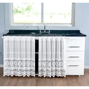 Cortina de Renda indicado para Janela ou Pia, com 1,60m de largura e 80cm de altura, ideal para varão com até 1,5 m de comprimento. A Linha Renda é leve, versátil, com lindos detalhes. Desenvolvido com uma técnica exclusiva de entrelaçamento dos fios, dando um toque charmoso e romântico ao ambiente. Composto por:1 Cortina de Renda para Janela ou pia Interlar 1,60x80cm Tamanho:Largura: 1,60 mAltura: 80 cm Indicações:- Varão com Até 1,50 m de Comprimento;- Tipo do Suporte: Simples (para 1 varão);- Suportes e Varão não acompanham o Produto. Composição do Tecido: Renda 100% Poliéster