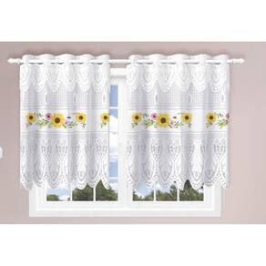 Cortina Pia/vitro Bando Passione Renda Cozinha1,60x0,75x0,20 Cor: Girassol Cortina de Renda indicado para Janela ou Pia com 1,60m de largura e 75m de altura, ideal para varão com até 1,5 m de comprimento. A Linha Renda é leve, versátil, com lindos detalhes. Desenvolvido com uma técnica exclusiva de entrelaçamento dos fios, dando um toque charmoso e romântico ao ambiente. Composto por: 1 Cortina de Renda para Janela ou pia Interlar 1,60x80cm Tamanho: Largura: 1,60 m Altura: 80 cm Indicações: - Varão com Até 1,50 m de Comprimento; - Tipo do Suporte: Simples para 1 varão ; - Suportes e Varão não acompanham o Produto. Composição do Tecido: Renda 100% Poliéster