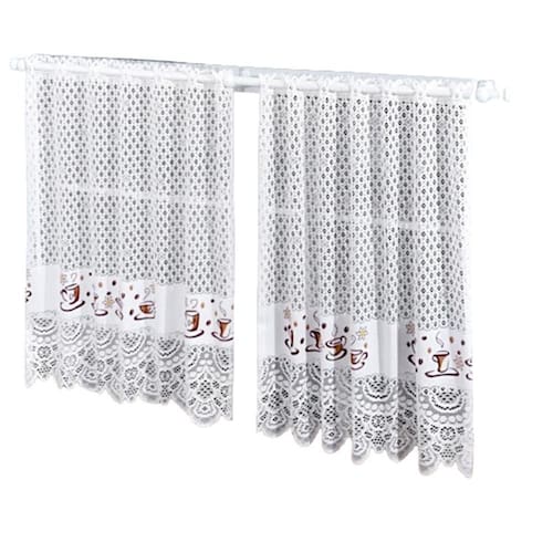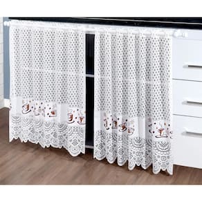 Cortina Pia Vitro Renda Cozinha Café 1,60X0,80 Alt Cortina de Renda indicado para Janela ou Pia Café, com 1,60m de largura e 80cm de altura, ideal para varão com até 1,5 m de comprimento. A Linha Renda é leve, versátil, com lindos detalhes. Desenvolvido com uma técnica exclusiva de entrelaçamento dos fios, dando um toque charmoso e romântico ao ambiente. Composto por: 1 Cortina de Renda para Janela ou pia Interlar 1,60x80cm Tamanho: Largura: 1,60 m Altura: 80 cm Indicações: - Varão com Até 1,50 m de Comprimento; - Tipo do Suporte: Simples para 1 varão ; - Suportes e Varão não acompanham o Produto. Composição do Tecido: Renda 100% Poliéster
