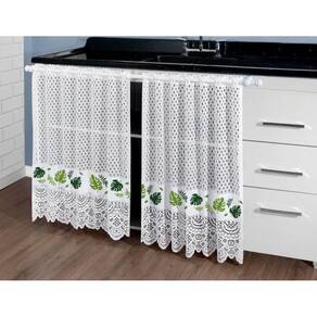 Cortina Pia Vitro Renda Cozinha Costela Adão 1,60X0,80 Alt Cortina de Renda indicado para Janela ou Pia Costela de Adão com 1,60m de largura e 80cm de altura, ideal para varão com até 1,5 m de comprimento. A Linha Renda é leve, versátil, com lindos detalhes. Desenvolvido com uma técnica exclusiva de entrelaçamento dos fios, dando um toque charmoso e romântico ao ambiente. Composto por: 1 Cortina de Renda para Janela ou pia Interlar 1,60x80cm Tamanho: Largura: 1,60 m Altura: 80 cm Indicações: - Varão com Até 1,50 m de Comprimento; - Tipo do Suporte: Simples para 1 varão ; - Suportes e Varão não acompanham o Produto. Composição do Tecido: Renda 100% Poliéster