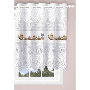 Cortina Pia Vitro Stilo Renda Cozinha 1,60X0,80 Alt Cor: Bule Dourado Cortina de Renda Stilo indicado para Janela ou Pia Limão com 1,60m de largura e 80cm de altura, ideal para varão com até 1,5 m de comprimento. A Linha Renda é leve, versátil, com lindos detalhes. Desenvolvido com uma técnica exclusiva de entrelaçamento dos fios, dando um toque charmoso e romântico ao ambiente. Composto por: 1 Cortina de Renda para Janela ou pia Interlar 1,60x80cm Tamanho: Largura: 1,60 m Altura: 80 cm Indicações: - Varão com Até 1,50 m de Comprimento; - Tipo do Suporte: Simples para 1 varão ; - Suportes e Varão não acompanham o Produto. Composição do Tecido: Renda 100% Poliéster