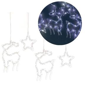 Cortina de LED Cascata Figuras Rena e Estrela Natalina – 130 LEDs Branco Frio – 3m x 85cm – Sequencial Bivolt