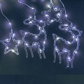 -Design natalino encantador: 5 estrelas e 5 renas distribuídas ao longo da cortina, formando uma cascata de luz perfeita para qualquer espaço.