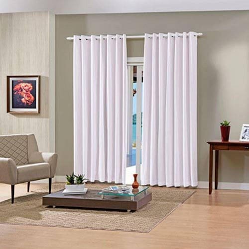 - Cortina em voil liso e forro corta luz com ilhós para varão
