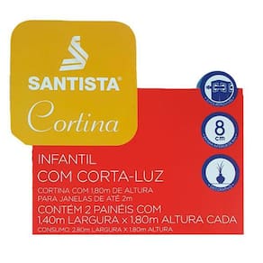 Esta linda cortina infantil com corta luz da santista vai deixar a garotada bem alegre e o quarto mais aconchegante. Com lindas cores e um ótimo acabamento, esta cortina também pode ser combinada com o jogo de lençol da mesma linha infantil da santista. Ela é formada por 02 painéis de 1,40m de largura e 1,80m de altura cada, dando uma cortina total de 2,80m x 1,80m. Seu tamanho é indicado para janelas de até 02 metros de largura. Este modelo já vem com o forro corta luz junto do tecido da cortina.