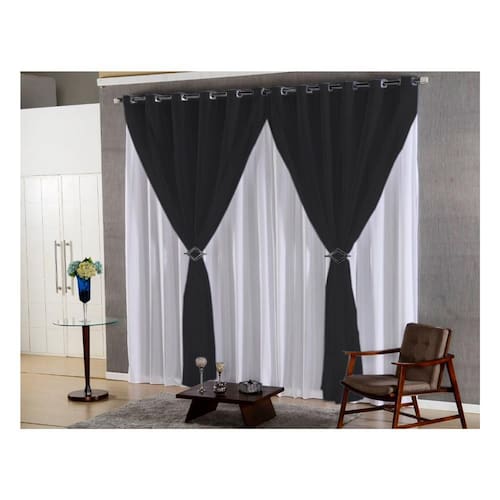 Cortina quarto voal liso preto com forro branco 4,00x2,80 Antes de efetuar a compra leia o anúncio completo para tirar todas as dúvidas