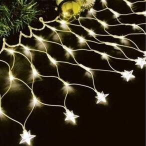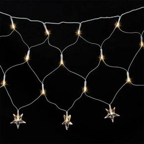 Cortina LED Decorativa em Rede com Estrelas 120 LEDs Branco Quente, 8 Funções de Pisca, 3 Metros