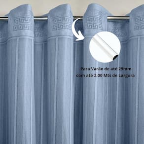 As medidas dessa cortina são 3,50m de largura e 2,20m de altura. Para garantir que a cortina se encaixe perfeitamente na sua janela, recomendamos que ela seja no mínimo 30cm maior que a janela na largura e 45cm maior na altura. O varão deve ser fixado a 15cm da parte superior da janela, o suporte do varão ficará preso à parede na distância de 15cm das laterais da janela e as ponteiras a 5cm de cada suporte.