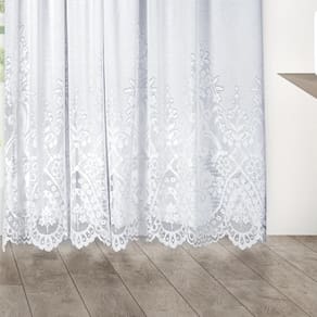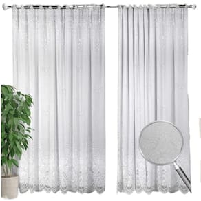 Essa cortina é confeccionada em renda de alta qualidade, com forro incluso, garantindo privacidade e bloqueio da luz externa. Seu tecido é composto por 100% poliéster, o que confere durabilidade e resistência ao produto.