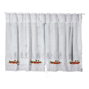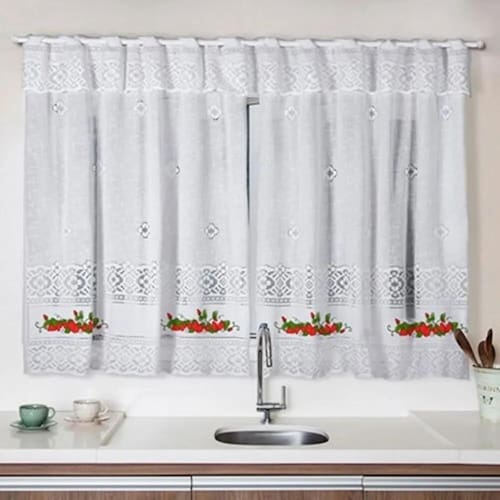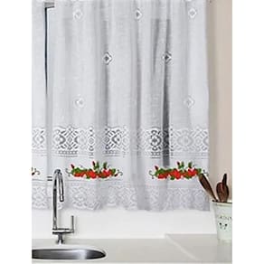 Cortina renda cozinha 2,00 lag. X 1,20m alt morango branca Descrição