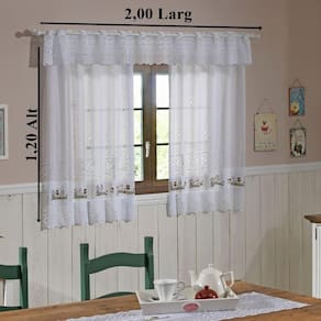 - tamanho: cortina - 2,00 m largura x 1,20 m altura x 0,30m bandô - tamanho recomendado do varão - 1,50 m para pode ficar franzida - composição: 100% poliéster