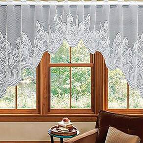 - desenho: tulipa - contém: 01 cortina cascata renda - composição: 100% poliéster - consumo de tecido: largura 3,00m x altura 1,00m - indicado para varões de 1,00m a 2,00m largura para a cortina ficar franzida.