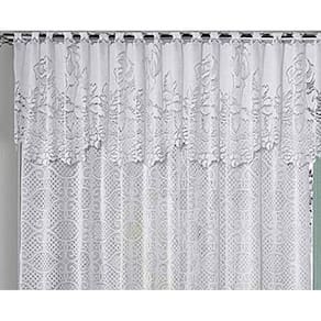 Cortina Renda Roseiral Sala Branco 3,00x1,80 com bando