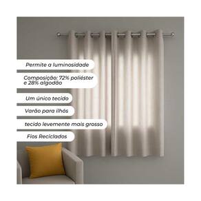 Transforme sua casa com a elegância da Cortina Rústica Lugo! Feita com fios reciclados para uma escolha sustentável. Seu tecido é levemente mais grosso com uma gramatura de 221,46g/m, é composto por 72% poliéster e 28% algodão, garantindo durabilidade e charme. Desenvolvida para permitir a entrada de luz natural sem comprometer sua privacidade, a Cortina Rústica Lugo possui bainhas laterais de 2cm e uma barra inferior de 5cm. Com duas folhas de 1,50m, sua largura total de 3,00m por 1,70m de altura é ideal para salas e espaços onde a luminosidade é bem-vinda. Esta cortina é compatível com varões de até 1,50m de largura e apresenta 20ilhoses cromados para uma instalação fácil e elegante. Adquira agora a sua Cortina Rústica Lugo e dê um toque moderno com um toque clássico ao seu ambiente. Imagens meramente ilustrativas. Varão não incluso.