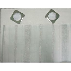 02 partes de 2,70m altura x 2,10m largura com 24 ilhós cromados no total, sendo 12 de cada lado