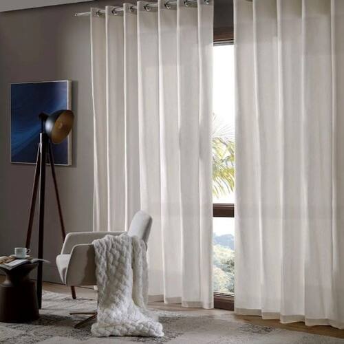 Sua composição em 80% poliéster e 20% algodão permite a luminosidade e privacidade, além de possuir um design incrível e deixando o ambiente elegante complementando a sua decoração. As bainhas laterais e a barra inferior conferem um aspecto refinado à cortina. E o melhor: ela vem em duas partes de 1,50m de largura por 1,70m de altura, indicada para varões de 1,00m até 1,50m de largura, com 20 ilhoses.