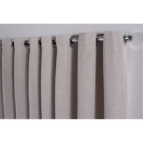 contém: 01 cortina gaze de linho com forro blackout tecido com ilhós cromado, sendo duas partes de 2,5m por 2,80 de altura. Cor - linho off whitte com forro blackout areia. Caso queira outra cor de ilhós, também temos na opção bege, preto, branco, palha, tabaco e ouro velho. Por favor informar no campo de mensagem após a compra