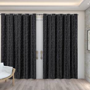 Cortina Sala Tecido Jacquard Semi Blackout Preto 4,00X2,50