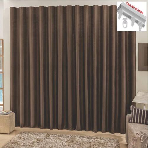 Cortina Top Chick 2 Metros Sala Quarto Tecido Ráfia Trilho Suisso