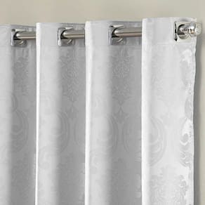 Cortina Turin Jacquard Semiblackout Floral 2,00x1,70m Para Sala Quarto Varão 2m Ilhóses - Branco