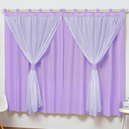 Cortina Varão Quarto Bebe Criança Menina Lilás 2Mx1,70M
