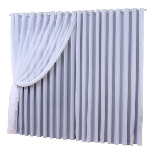 Cortina voal liso forro tecido blackout branco 3,00x2,50 Antes de efetuar a compra leia o anúncio completo para tirar todas as dúvidas Contém na embalagem 01- cortina em tecido 3,00 larg x 2,50 altIlhós quadrados e cromados prateados brilhantes Cortina aberta ao meio contendo 2 partes de 1,50 larg x 2,50 alt cada -recomendado para varao ate 2 metros.Para que ela fique franzida Com acabamento refinado toda em bainha,e com ilhós quadrados cromado, a cortina voal com forro blackout em tecido vem ganhando espaço por ser bem suave e bonita.Alem de deixar o ambiente mais elegante ajuda a manter a sensaçaoTermica do ambiente.... Tecido de expressura grossaFeita com ilhos cromados na parte da frente e preto na parte trás.Instruções de lavagem etiqueta interna do produto Bloqueia a claridade 100%Cortina blackout Observação: a foto é ilustrativa. O produto pode sofrer diferenças na tonalidade de cor, dependendo daConfiguração da tela do seu celular ou computador brilho, contraste etc. Os demais itens composto no cenário da foto varão, poltronas, tapetes , quadros etc. não estão inclusos. Direto da capital nacional do bordado Fabricaçao propria..... Composição100% poliester Marca: B.F Confecçoes