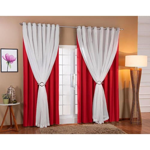 Cortina De Voil Com Forro Blackout Tecido 4,00X2,50 Sala E Quarto Vermelho Contém 01 cortina blackout com voil 4,00x2,50 para varão simples 02 presilhas cromadas Dividida em duas partes iguais de 2,00 de largura por 2,50 de altura