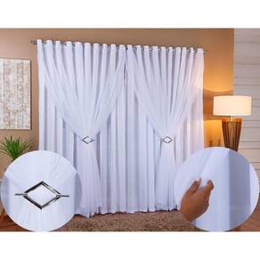 Cortina Voil Com Forro Sala E Quarto Microfibra 6,00 X 2,20 - Branco A cortina voil com forro de microfibra combina perfeitamente com a decoração da sua sala, quarto ou escritórioAliando bom gosto, sofisticação e praticidade para um charme perfeito na decoração do ambiente.Contém na embalagem:01 cortina com forro 6,00m largura x 2,20m altura 02 fivelas decorativas cromadasIlhós redondo cromado em toda parte superior Composição: 100% poliéster Cortina em 2 partes de 3,00m x 2,20mForro em tecido microfibra e frente em voil. Perguntas mais frequentes:A cortina é dividida em duas partesSim em 2 partes.A cortina bloqueia 100% da luminosidadeNão, cortina não possui blackout, não fica transparente pois possui forro de microfibra.Fazem sob medidaSim fazemos sob medida , antes da compra solicite o orçamento.É para varão, simples ou duploVarão simples.Qual a cor é o ilhósIlhós cor cromado.Obs:varão vendido separadamenteIndicamos adquirir a cortina 2 metros maior que o seu varão para ficar franzida como na foto