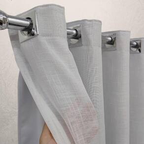 Cortina Blackout é ideal para controlar a claridade, bloquear a vista, embelezar a decoração do ambiente e manter a temperatura. Medidas Prontas: Largura 6,0m x Altura 2,80m Dividida em 2 partes de 3,00m x 2,80m Tecido: Voil Linho com Forro Blackout Cor: Branco Gelo Acabamento feito na Bainha Ilhós Cromado, indicado para Varão de 28mm Cortina ideal para Varão de até 3,5m Atenção: essa cortina não é em PVC, e sim Tecido
