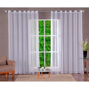 Linda Cortina para Sala ou Quarto Medidas Prontas: Largura 4,00m x Altura 2,30m Dividida em 2 partes de 2,00m x 2,30m Tecido: Voil liso / 100% Poliéster Cor: Branco Acabamento feito na Bainha Ilhós Cromado, indicado para Varão de 28mm Cortina ideal para Varão de até 2,5m Não acompanha o Varão Esta Cortina é de Voil, não forrada Cortina Transparente Marca: Não Informado
