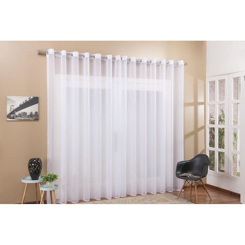 Cortina basic só voil para varão de 5 metros Acompanha: 01 cortina de 7,00m largura x 2,50m de altura tamanho esticado Cada folha tem 3,5m x 2,50m - para varão simples de 19mm fino ou 28mm grosso . varão não acompanha Composição: Tecido voil 100% poliéster Consumo de tecido: 7m Obs.: imagem ilustrativa, acompanha a compra somente os itens que consta na descrição. Marca: Gabriela Martin Enxovais