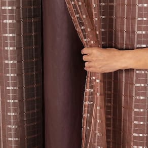 Cortina Voil Xadrez Com Forro Blackout 6,00 x 2,80 Tabaco Cortina Voil 6,00 x 2,80Cortina em tecido voil, os ilhós são redondos, tecido com excelente caimento. Indicada: Para varão de 6 metros Acabamento:Feito bainha nas bordas e nos barrados. COMPOSIÇÃO:Tecido 100% Poliéster