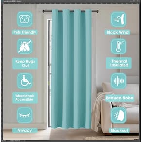 - DETALHES DO CONJUNTO: Pacote de cortina de porta de painel único, mede 34 polegadas de largura por 80 polegadas de comprimento com 6 ilhós de metal prateado (diâmetro interno de 1,6 polegadas) na parte superior, fácil de instalar e deslizar suavemente. Animais de estimação não têm problema em passar.