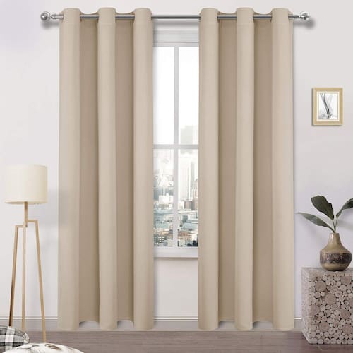 Cortinas blackout DWCN As cortinas blackout DWCN oferecem uma maneira simples, bonita, funcional e econômica de decorar janelas e paredes para quarto, sala de estar, sala de cozinha, quarto de menina ou quarto de hóspedes, pode mostrar excelentes sensações visuais. Você não ficará desapontado ao comprar nossas cortinas blackout. Alto desempenho: Nossas cortinas de escurecimento de ambiente são bem feitas e o material não é frágil, por isso é macio ao toque. Nossas cortinas estão disponíveis em uma variedade de cores e tamanhos, você pode ter muitas opções para o que deseja. O efeito de sombreamento varia de acordo com os tons da cor, quanto mais escura a cor, melhor o efeito. Pode proporcionar mais propício ao seu sono e privacidade de vida. As coisas clássicas duram para sempre. Para se adequar ao seu estilo integral de decoração de casa, mas também apresentar alguns estilos de decoração distintos, projetamos nossas cortinas de maneira simples, elegante e clássica. Anéis resistentes à ferrugem na parte superior, ajustam-se à maioria das hastes de cortina normais, fáceis de instalar ou remover. As rugas desaparecerão após serem penduradas por alguns dias. Fácil de cuidar, proporcionando uma maneira mais conveniente de economizar tempo na amamentação. A satisfação do cliente é o nosso maior prazer. Se você tiver outras dúvidas, a tempo. Faremos o nosso melhor para resolvê-lo para você. Desejamos que você tenha uma boa experiência de compra! - Cortinas blackout grossas feitas de 100% poliéster importado de alta qualidade. Seu pacote incluirá 2 painéis de cortina bege e cada painel mede L 96 x C 213 cm. - Acabamento de qualidade, bainha inferior de 1,5 cm. Cada painel de cortina é construído com 6 ilhós prateados à prova de ferrugem (diâmetro interno de 4 cm) - Nossas cortinas blackout são tecidas com uma camada tripla e tecido resistente para proporcionar uma experiência incomparável de blecaute e sono. Cortinas perfeitas para quarto, sala de estar, cozinha, escritório, etc. - Cortinas com isolamento térmico e economia de energia, ótimas para reduzir as perdas de energia durante o verão e inverno e reduzir os custos de energia. Nosso painel de cortina para escurecimento de ambiente é pesado o suficiente para reduzir algum ruído, ideal para aqueles que vivem ao lado de ruas movimentadas. - Lavável na máquina em água fria, secar na máquina, ciclo de lavagem único, sem alvejante. Passado a ferro a baixa temperatura, se necessário.