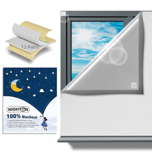 Cortinas blackout Portabla - 100% BLACKOUT - Cortinas Nighton 100% blackout, tecido leve para facilitar a portabilidade, bloqueia a luz solar no verão e reduz a perda de calor no inverno, escurece perfeitamente o sombreamento para criar um ambiente de sono escuro confortável - GANCHO E FITA DE LAÇO ATUALIZADOS - Tiras autoadesivas de fita de gancho e laço, aderência forte e traseira muito pegajosas podem ajudar a manter suas persianas blecaute portáteis em uma variedade de tipos de superfície, como plástico, madeira e vidro. Sem marcas ou resíduos após a remoção e pode ser anexado sem perfurar - Formato DIY - 101 × 145 cm (40" × 57") Cortinas pretas podem ser cortadas em qualquer forma ou tamanho que você precisar, perfeitamente adequadas para trailers, portas, tetos solares, janelas retangulares, redondas e poligonais - SEGURANÇA DO MATERIAL - Nossas cortinas blackout não são tóxicas e não contêm formaldeído, proteção ambiental, fácil instalação, adequadas para quartos de bebês ou trabalhadores noturnos, etc. Para criar um ambiente sombreado para o interior e melhorar a qualidade do sono - Excelente garantia de qualidade: para garantir a qualidade, cada uma das nossas cortinas blackout passa por um rigoroso controle de qualidade antes de sair da fábrica. Se você tiver alguma dúvida sobre nossas cortinas blackout portáteis, sinta-se à vontade para entrar em contato conosco, responderemos dentro de 24 horas e lhe daremos uma solução satisfatória