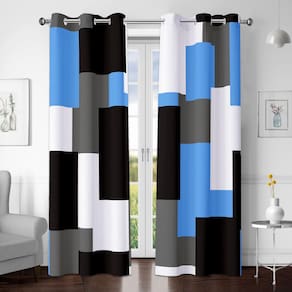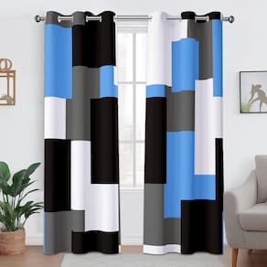 - BLOQUEIO DE LUZ EFICAZ: Nossas cortinas opacas geométricas azuis e brancas com fundo preto podem bloquear completamente a luz solar de 100%, mesmo nos dias mais ensolarados. Proporcionando um ambiente escuro para curtir seus filmes favoritos ou dormir bem. Perfeito para quem valoriza a privacidade total e deseja criar um ambiente tranquilo e relaxante em sua casa.
