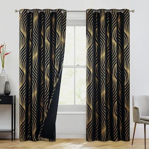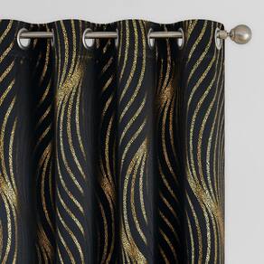 Atualize suas janelas com uma folha dourada em cortinas blackout pretas 52 x 84. Capacidade 100% blackout: cada cortina é feita com 3 camadas de forro, incluindo um forro preto na parte de trás que bloqueia efetivamente 99%-100% da luz. Se você precisa tirar uma soneca durante o dia ou desfrutar de uma noite de cinema sem qualquer interferência de luz externa, essas cortinas proporcionam uma experiência completa de blecaute, ajudando você a relaxar e aproveitar seu tempo pessoal. O design de ponto de linha de onda matálico adiciona um toque de elegância e pode complementar vários estilos de interiores, do contemporâneo ao clássico. Estas cortinas para ambientes não são apenas sobre estilo e controle de luz, mas também sobre eficiência energética. O recurso de isolamento térmico ajuda a regular a temperatura em seu quarto, mantendo o calor fora durante o verão e mantendo o calor durante o inverno. O design de ilhós permite fácil instalação e deslizamento suave das cortinas. Os ilhós são feitos de metal durável, garantindo uso duradouro. Este design também adiciona um toque moderno à aparência geral das cortinas. O pacote inclui dois painéis, cada um medindo 213 cm de comprimento. Isso oferece ampla cobertura para a maioria das janelas padrão, garantindo que seu quarto esteja bem vestido e funcional. Uso versátil: embora essas cortinas sejam ideais para quartos e salas de estar, elas também podem ser usadas em outras áreas da sua casa, como cozinha, sala de jantar ou escritório em casa. Seu design versátil as torna adequadas para qualquer cômodo que exija controle de luz e estilo. O material de alta qualidade utilizado nessas cortinas não é apenas durável, mas também fácil de limpar. Basta lavar à máquina em água fria e secar em temperatura baixa para melhores resultados. O tecido grosso também oferece um grau de redução de ruído, ajudando a criar um ambiente mais silencioso e tranquilo. Estas cortinas ajudam a proteger seus móveis, pisos e obras de arte contra desbotamento, bloqueando os raios UV prejudiciais. - Pronto: cada painel mede 132 L x 214 C, com 2 painéis incluídos. A estampa de pontos dourados metálicos Xwincel em cortinas pretas traz elegância e um toque elegante a qualquer cômodo da sua casa - Brilho dourado metálico: a clássica estampa de pontos de onda dourada nas cortinas adiciona um toque moderno e bonito. Seja no quarto ou na sala de estar, estas cortinas complementam perfeitamente sua decoração - Blecaute eficaz: estas cortinas de 3 camadas com forro preto bloqueiam 100% da luz, equilibram as temperaturas internas e externas, reduzem o ruído e bloqueiam os raios UV. Ideal para home theater ou aqueles que precisam de um ambiente silencioso e escuro durante o dia - Parte superior com ilhós: cada painel de cortina possui 8 ilhós metálicos prateados com um diâmetro interno de 4 cm, ajustando-se à maioria das hastes para fácil instalação e deslizamento suave - Fácil de cuidar: permite lavar à máquina com água fria, secagem em baixa temperatura e passar a ferro em baixa temperatura, sem branqueamento