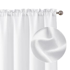 Chyhomenyc Cortinas BSMB Rod Edição de Bolso - Tamanho e quantidade: cada pacote contém 2 peças, cada uma com 101 cm de largura e 228 cm de comprimento, a largura total é de 203 cm, o comprimento total é de 232 cm, incluindo o cabeçalho de 3,8 cm. O bolso da haste aplicável a hastes de cortina não tem largura superior a 2,5 cm, o bolso inferior da haste da bainha serve para varões de cortina com largura não superior a 2,5 cm. - Cortinas de filtragem de luz: Estas elegantes cortinas de filtro de luz de linho branco podem filtrar a quantidade perfeita de luz solar, deixando a sala com luz brilhante e natural. É de boa qualidade, permite que a luz entre na sala e pare de bisbilhotar para proteger a privacidade, e pode regular bem a temperatura da sala. - Vários cenários: estas elegantes cortinas brancas de 213 cm de comprimento são feitas de tecido texturizado de linho sintético grosso e resistente, que é macio e combina com qualquer estilo de cômodo. Estas cortinas brancas de 213,4 cm de comprimento são adequadas para quarto, sala de estar, quarto de crianças, quarto de hóspedes, sala de estudo, casa de fazenda. - Opções de suspensão em 3 vias: pendure estas cortinas de quarto (1) com bolsos de haste de cabeçalho, adequadas para hastes de cortina de até 2,5 cm de diâmetro, ou (2) com anéis de clipe, fáceis de deslizar e fechar (anéis de clipe não estão incluídos) ou (3) visual superior, bolso inferior da bainha das cortinas adequado para hastes de até 2,5 cm de diâmetro. - Lavável na máquina: lavar à máquina a frio em ciclo delicado com cores semelhantes. Somente alvejante sem cloro quando necessário. Secar em temperatura baixa. Remova imediatamente. Passar a ferro frio conforme necessário.