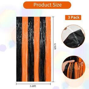 Flâmulas de porta TONIFUL, 3 peças de flâmulas pretas e laranja, fundo de cabine fotográfica, flâmulas metálicas, cortinas com franjas de alumínio para aniversário, Natal, Ano Novo, despedida de solteira, decoração de flâmulas de festa de Halloween (9,9 pés x 6,6 pés)