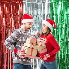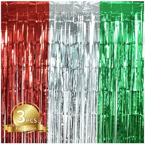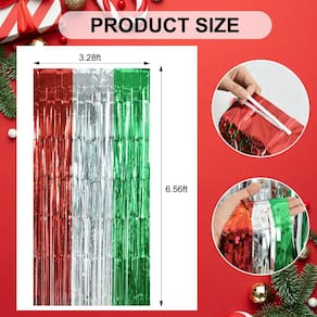 FLÂMULAS DE PORTA TONIFUL, 3 peças de flâmulas vermelhas, prateado, verde, cabine fotográfica, flâmulas metálicas, cortinas com franjas metálicas para aniversário, Natal, Ano Novo, despedida de solteira, decoração de flâmulas de formatura (9,9 pés x 6,6 pés)